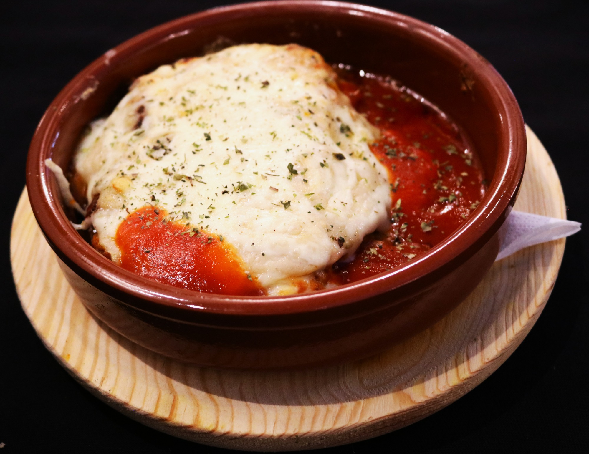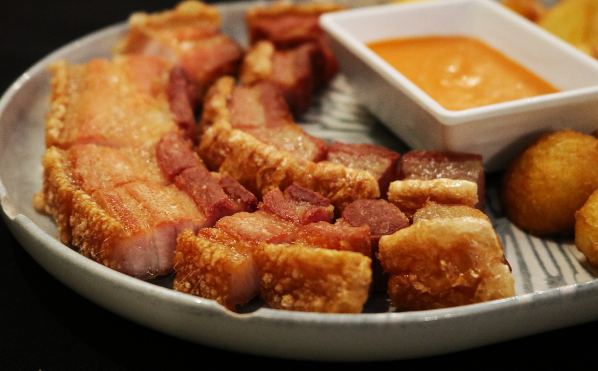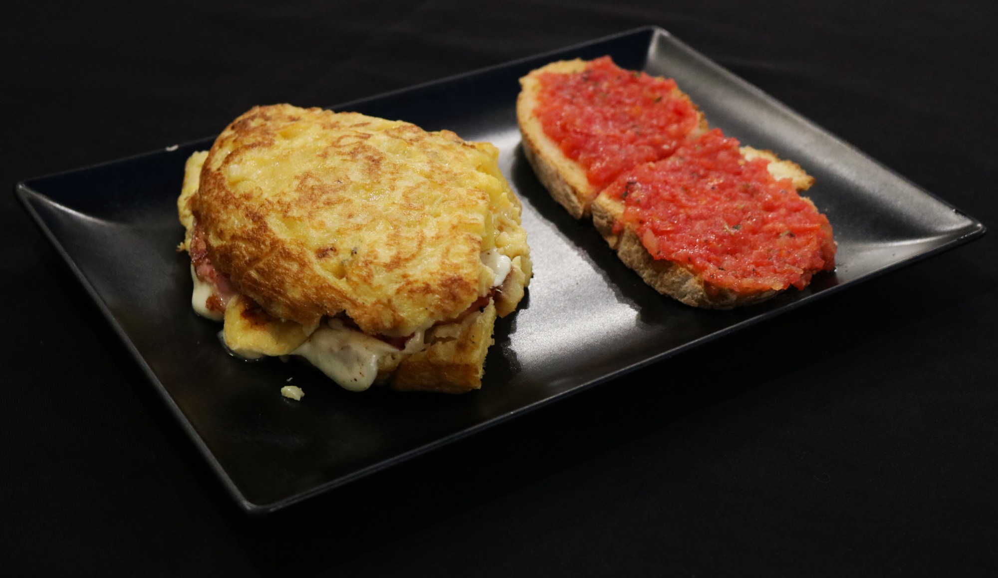 Pincho de tortilla rellena de lacón y queso / Spanish omelette with pork shoulder & cheese